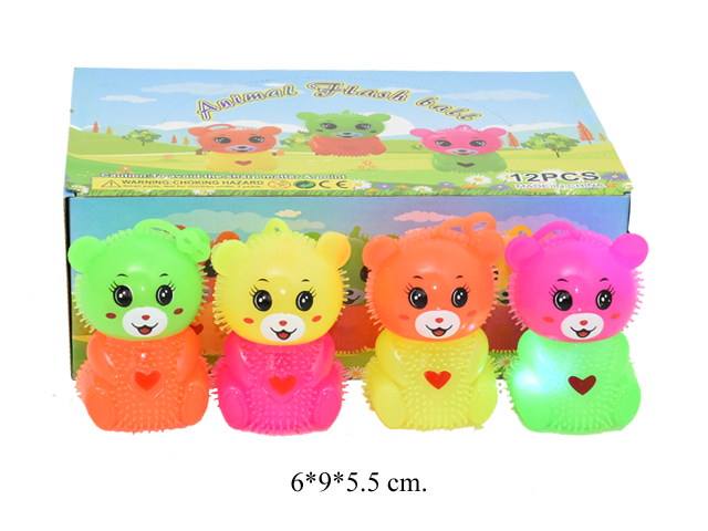 Мяч силиконовый в форме Медведь, внутри которого находится светящийся элемент. Игрушку можно сжимать и кидать, не опасаясь за её сохранность. Издает пищящий звук