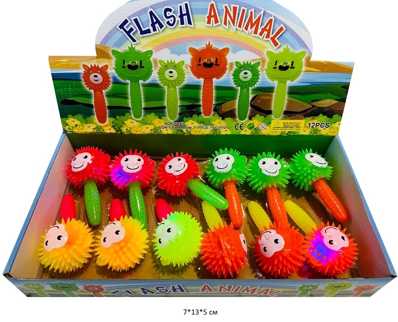 Мягкие на ощупь разноцветные массажные мячики в виде "пушистой" головы обезьяны на палочке, которые приятно держать в руках. Игрушка светится при резких движениях и нажатии. Ра рукоятку удобно держать игрушку не боясь потерять. Фигурку можно сжимать и кидать, не опасаясь за сохранность.