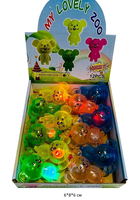 Мяч Антистресс арт. DYT-31 Коала цвета микс свет на резинке (12 шт.) шоубокс•