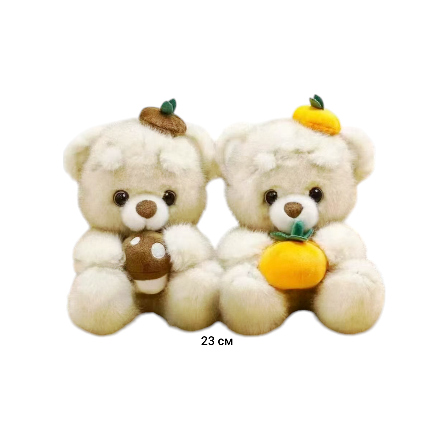 им Медведь арт. 209440 Светлый сидит в шляпке с фруктом 23 см в пак.