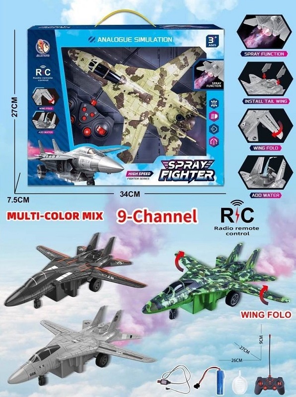 Самолет на р/у арт. 5003E Военный истребитель с аккум. свет, звук, пар в кор.34*7,5*27