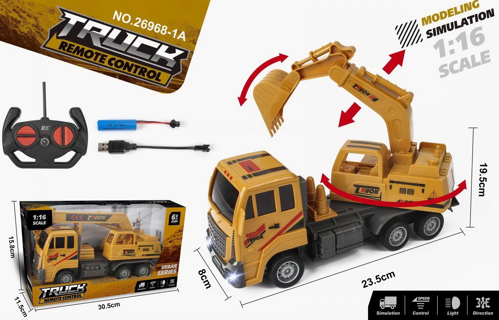 Экскаватор на р/у арт. 26968-7A" Спецтехника с аккумул. свет в кор. 30,5*11,5*15,8Масштаб модели 1:16