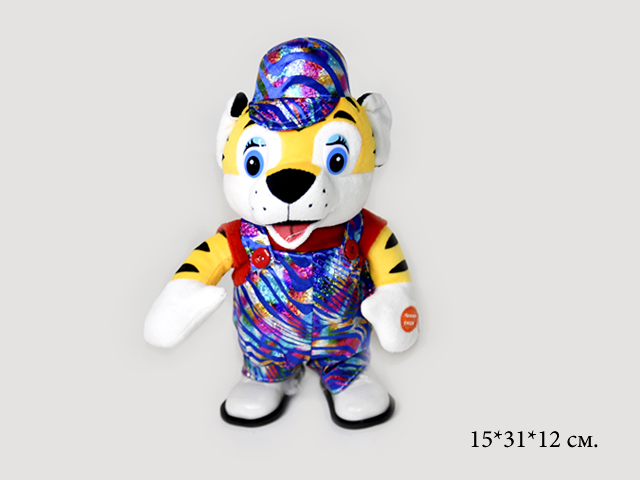 им Тигр арт. 8577-2 В синем радужном комбинезоне 2 детские песни, (муз.) на бат. в пак.