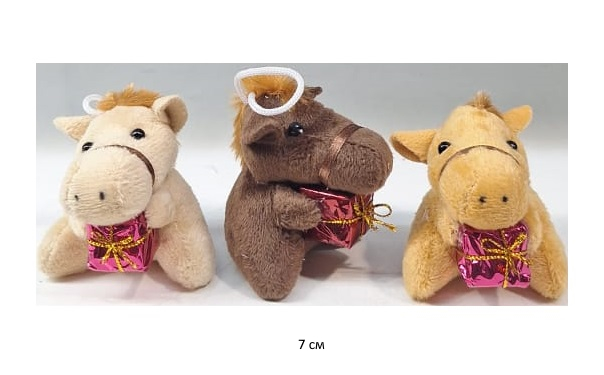 им Лошадь арт. 925-6 С петлей Сидит с подарком 7 см цвета микс 1 шт. в пак. (24 шт.)