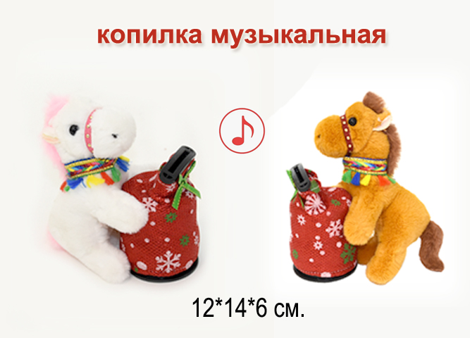 им Лошадь арт. YE25510-1 С мешком цвета микс Копилка на присоске музыкальная в пак.)