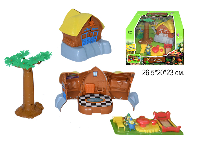 Игровой набор "Волшебный мир Эльфов" это раскладной домик у подножия огромного дерева. В домике есть вся необходимая мебель, а так же 2 фигурки волшебников эльфов.