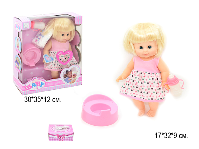 Набор позволит проявить заботу о кукле и почувствовать себя настоящей мамочкой. Если напоить куклу из бутылочки, то она по писает в горшок. Лялечку можно убаюкать и она уснет - глазки закрываются и открываются. Одежду можно менять.