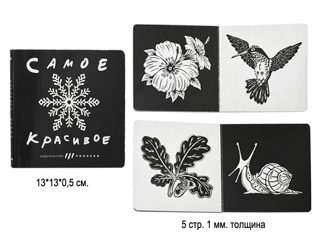 Книга без текста и включает 10 картонных страниц с черно-белыми иллюстрациями.