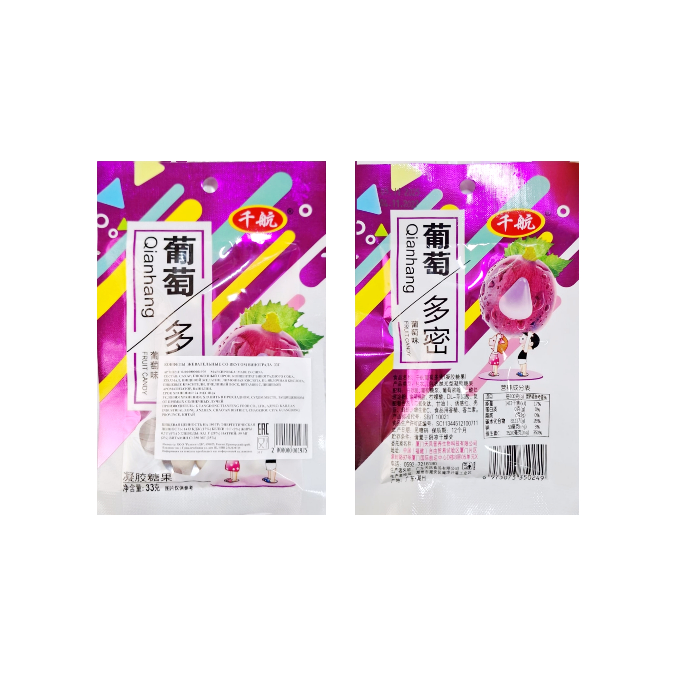 Конфета арт. /350249-1 Жевательная "Виноград" 33 г 20 шт упаковка#