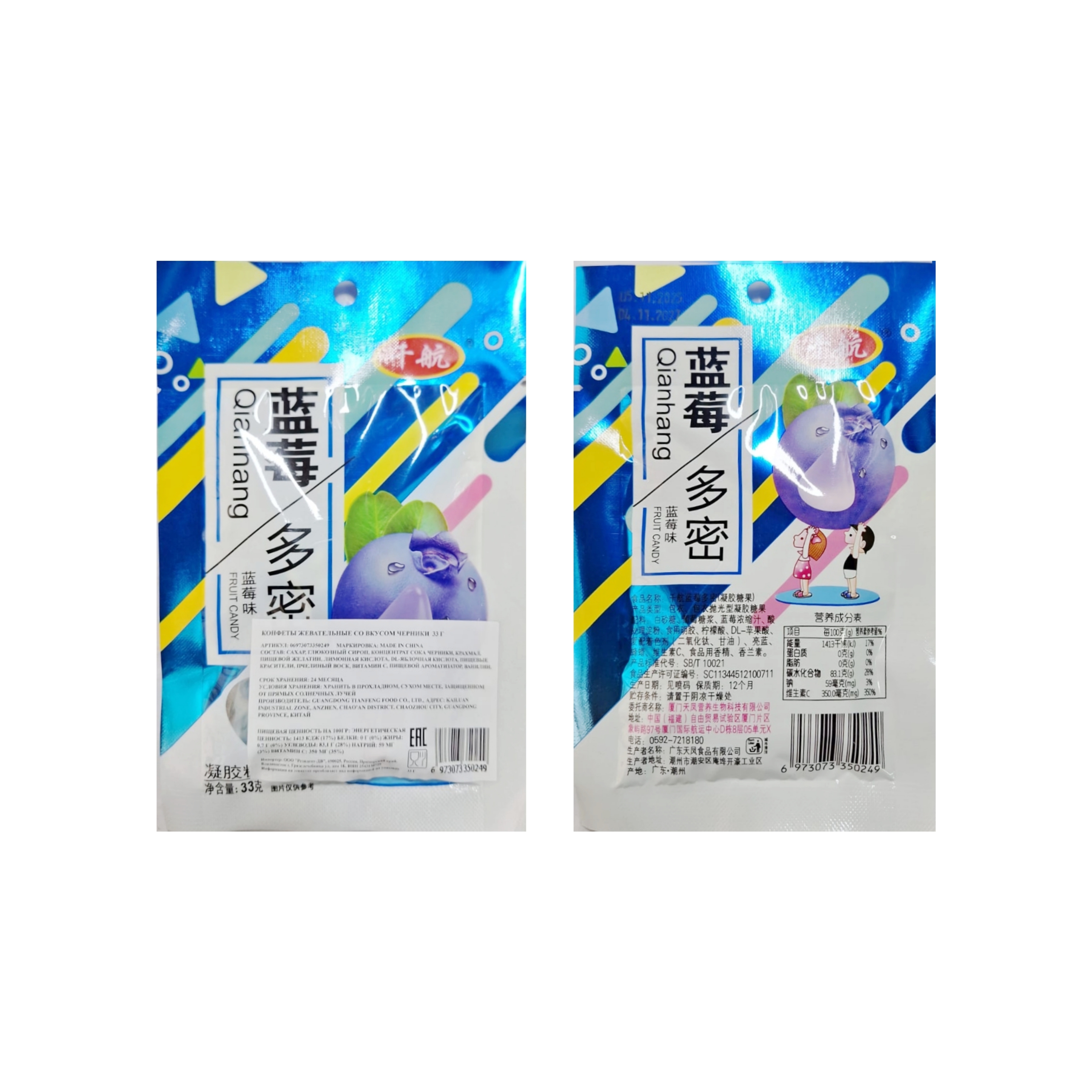 Конфета арт. /350249-3 Жевательная "Черника" 33 г 20 шт упаковка#