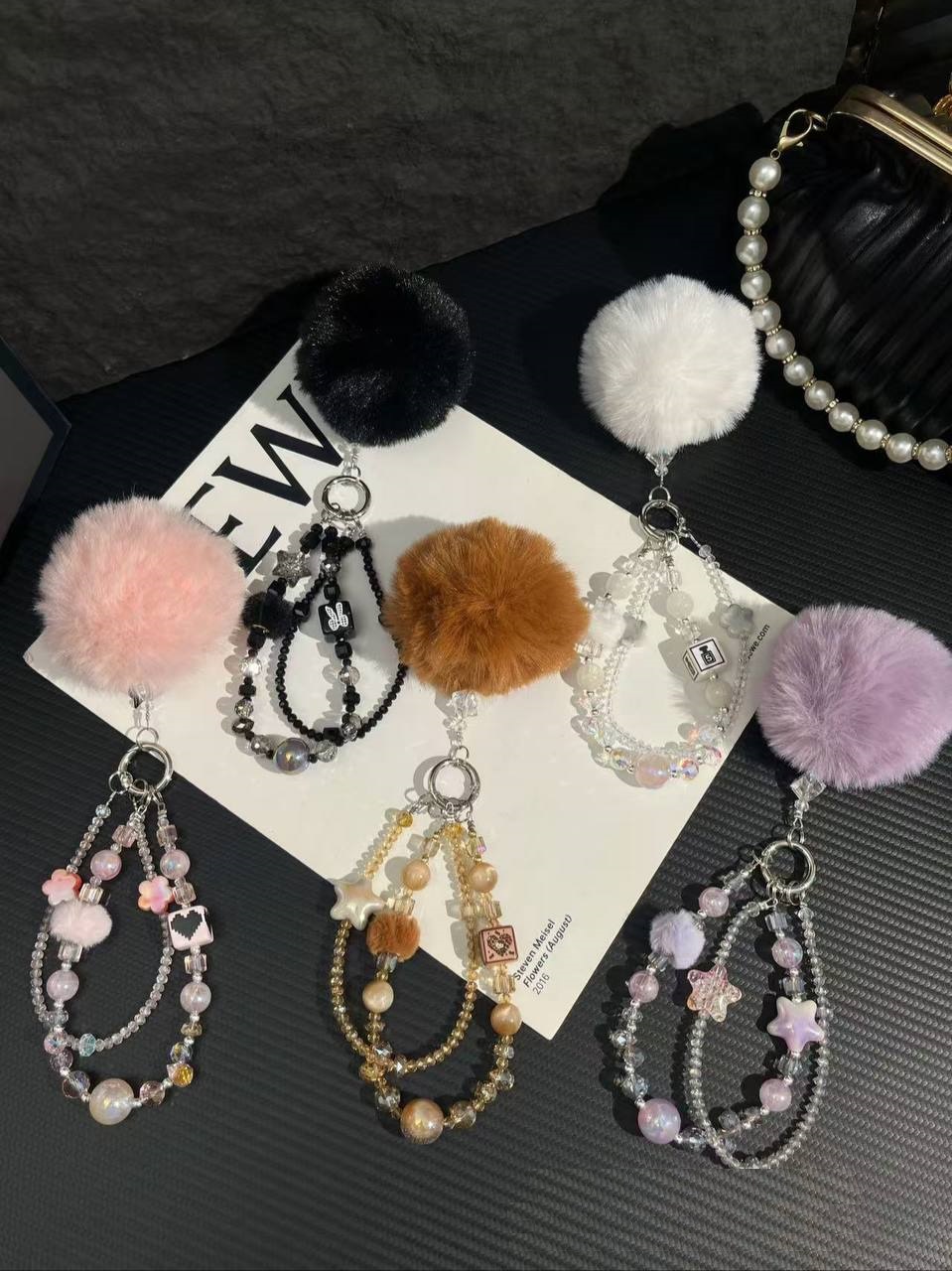 Брелок-подвеска арт. 209393 Двойной с меховым шариком 1 шт цвета микс в пак.
