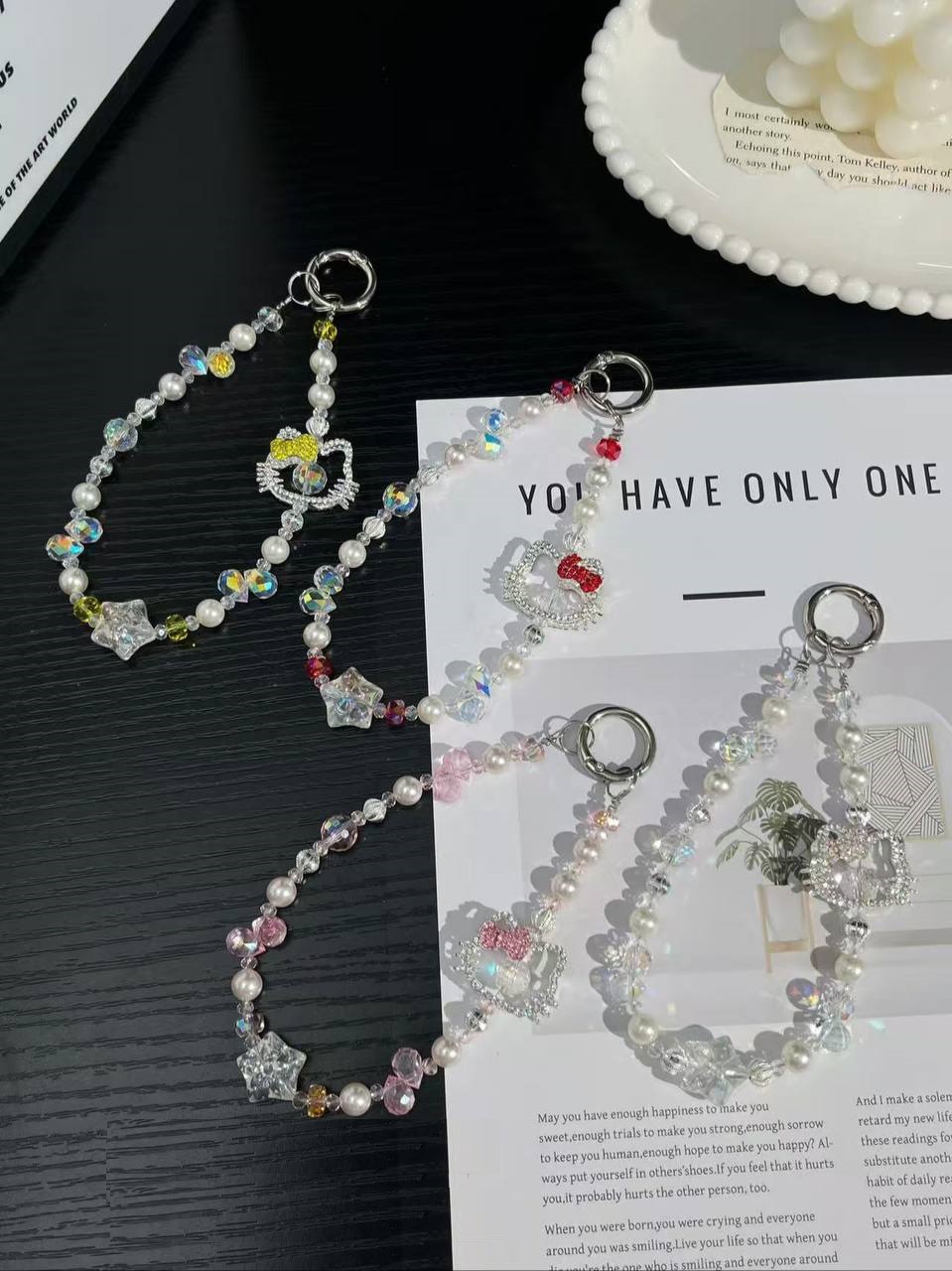 Брелок-подвеска арт. 209399 Кошка в стразах и жемчужины 1 шт цвета микс в пак.